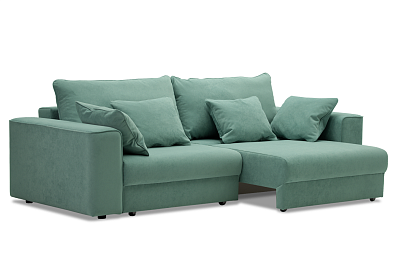 Диван МОНАКО с правой оттоманкой (мех. дельфин) Зеленый (Premier 18), Велюр